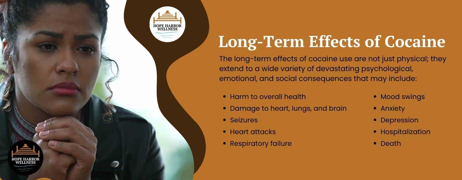 Cocaine is a serious drug with dangerous side effects and health risks that extend far beyond a fleeting high. While its short-term rush of euphoria and heightened energy can seem appealing, it’s essential to keep in mind that the insidious grip of addiction and the immediate threat of overdose are very real and ever-present risks of regular, or even singular, use. From the physical damage it inflicts on your cardiovascular system and other vital organs to the profound mental and neurological impacts of long-term use, cocaine’s devastating consequences should not remain a mystery. If you are struggling with ending cocaine use, experiencing difficult withdrawal symptoms, or finding yourself trapped in a cycle of craving, Hope Harbor Wellness in Atlanta, GA, can provide specialized outpatient substance abuse treatment tailored to your individual needs.
